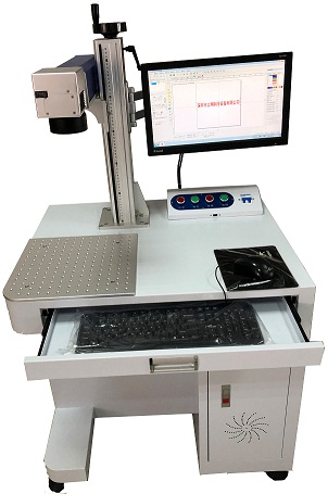 The desktop fiber laser marking machine isthe third generation laser marker system. It adopts optical fiber laser tooutput laser and realizes marking function through high speed scanninggalvanometer system. The fiber-optic laser marker features high electro opticconversion efficiency, air cooling, small size, materials and widely used inthe fields that have high requirement on depth, smoothness and fine, such asstainless mobile phone overlay, clock and watch ,mould, IC, mobile phonekeypad, etc. Bit map marking can carve beautiful pictures on the surfaces of metaland plastic, and the marking speed is 3-12 times of the speed of traditional firstgeneration lamp pump marker and second generation semiconductor marker. Fiberoptic is used to output laser, featuring high electro optic conversionefficiency, small size and high light beam quality.